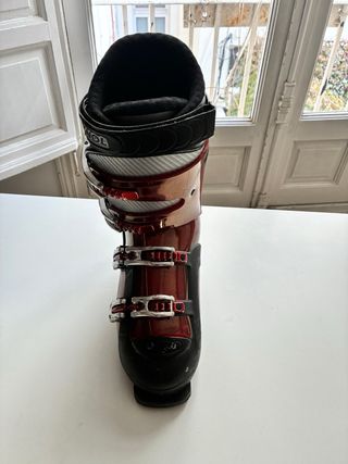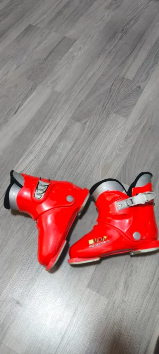 Botas de esquí infantiles de la marca Rossignol. - Talla 21.5 (33-34 aproximadamente) - Color rojo brillante. - Cierre con hebilla. - Interior acolchado. La suela está en buen estado Hago envíos