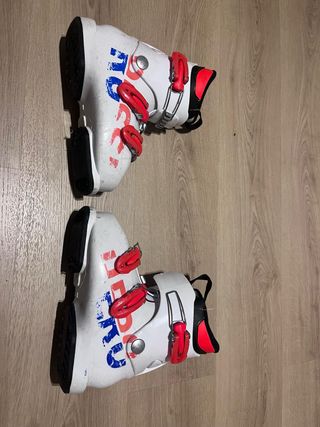 Botas de esquí infantiles de la marca Rossignol. Número 28. Tienen un fallo que se ve en la última foto, pero no afecta al uso, mi hijo las ha usado sin ningún problema. Muy poco uso