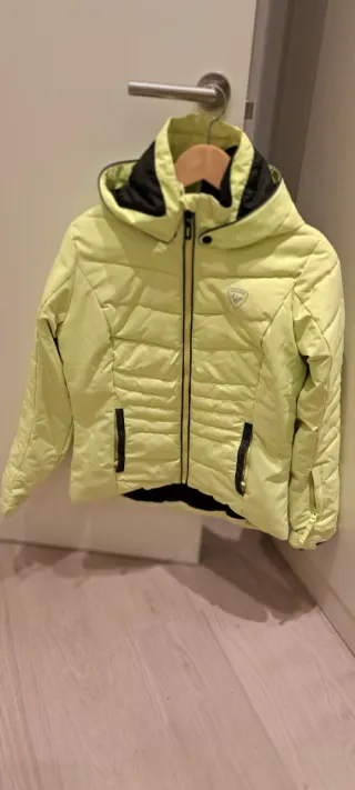 Chaqueta de esquí para chica de la marca Rossignol, corte ajustado, muy cómoda y práctica para esquiar. - Color verde lima. - Diseño acolchado. - Capucha. - Cremallera frontal. - Bolsillos laterales con cremallera. Muy buen estado usado solo 3 veces