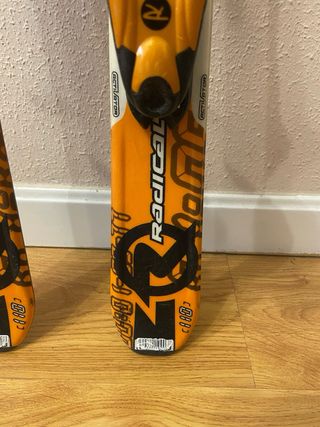Esquís Rossignol modelo Radical para niños. Diseñados para jóvenes esquiadores. - Color naranja y negro. - Fijaciones incluidas.
