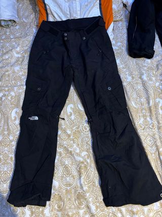 Conjunto completo de ropa de esquí de hombre y de mujer: - Chaqueta de mujer esquí blanca con detalles naranjas y negros marca Descente talla 38. - Pantalones de esquí negros marca North Face - Chaqueta de esquí de hombre negra marca Rossignol talla M. - Pantalones de esquí negros marca Coulouir talla 42. Cada equipo compuesto de chaqueta + pantalon 25€. Los pantalones estan perfectos las chaquetas tienen algo mas de desgaste.