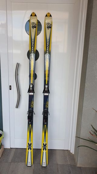 Se venden dos esquís, uno de la marca Rossignol y otro con fijaciones Salomon. - Esquís con diseño deportivo. - Fijaciones Salomon incluidas.