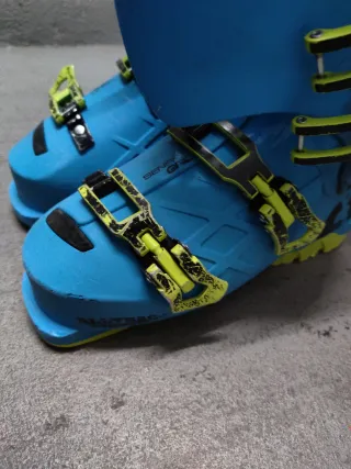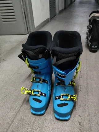 Botas de esquí junior Rossignol Alltrack 80 en talla 24.5. - Color azul con detalles en amarillo. - Cierre con ganchos. - Diseñadas para esquí all-mountain.