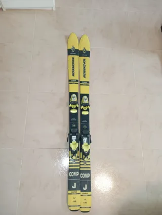 Esquís Rossignol Comp J de 130cm, ideales para jóvenes esquiadores. - Color amarillo y negro. - Fijaciones incluidas. - Modelo Super J Racing.