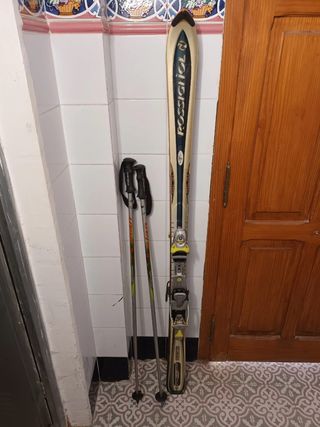 Conjunto de esquís Rossignol CS 200 para niños, perfectos para iniciarse en el mundo del esquí. - Esquís de color azul con detalles gráficos. - Fijaciones LOOK. - Incluye bastones Se han probado este finde y van geniales. Se vende por tener dos... Ideal para iniciarse y nivel medio. Fijaciones Look. Por el precio te ahorras alquilarlos y los tienes para siempre. Se usaron hasta los 12 años, unos 140 cm de