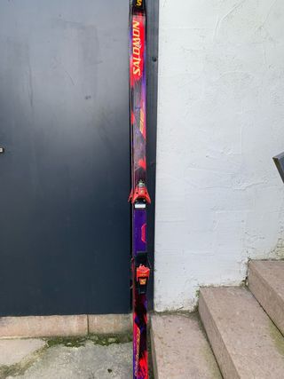 Vendo este conjunto de esquís con palos con enganches marca SALOMON. Todo funciona perfectamente. Ideal para un estilo retro o decoración.