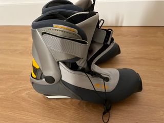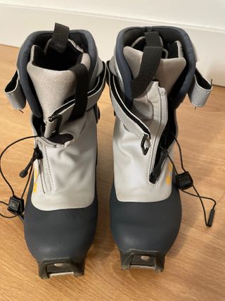 Se venden botas de esquí Salomon T3 en perfecto estado, ideales para niños/as o jóvenes que empiezan o tienen nivel intermedio. • Marca: Salomon • Modelo: T3 • Talla: 23 / 276 mm (aprox. nº 37 EU) • Color: Gris con blanco y detalles azul celeste • Cierres: 3 hebillas metálicas, fáciles de ajustar • Interior muy cómodo y cálido con forro de peluche negro. Usadas poco, en muy buen estado, listas para la temporada de esquí.