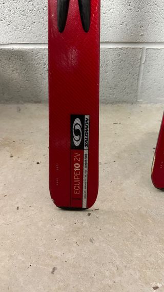 Esquís Salomon de 158cm. - Diseño con colores rojo, gris y negro. - Fijaciones Salomon incluidas.