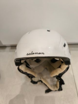 Casco de esquí Salomon con protección para slalom (mentonera barbuquejo). Diseñado para ofrecer seguridad y comodidad en la pista. Homologación fis P - Color azul y amarillo. - Incluye protección - Marca Salomon. Perfecto estado sin marcas ni rallones. Interior también como nuevo