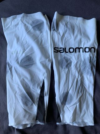 Perneras Salomon S/Lab con diseño circular. - Color blanco con detalles en gris. - Tejido de malla en la parte inferior.