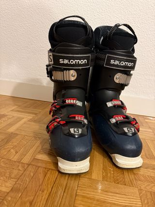 Botas de esquí de la marca Salomon. - Color negro con detalles en azul. - Cierre con 4 ganchos. - Talla 25.5.