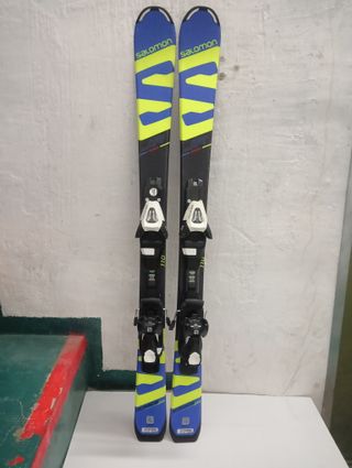 Esquís Salomon de 110 cm con fijaciones. - Recién encerados.