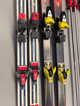 se venden esquis retro en buen estado con sus palos y bolsa salomon medida 1,85m, cambio por tabla se snow , 250 cada juego y 400 si se lleva todo ,escucho ofertas!