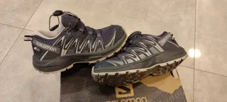 Zapatillas de senderismo Salomon para niño/niña en talla 32, en perfectas condiciones pues apenas han sido usadas. - Modelo: XA PRO 3D CSWP NOCTURNE J. - Talla EUR 32. - Color azul marino oscuro y gris. - Suela Contagrip en perfectas condiciones, buen agarre. - Se entrega con su caja original.