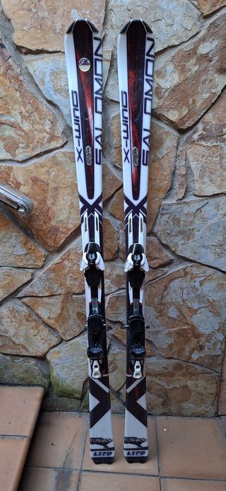 Conjunto de esquís Salomon Xwing de 170 cm, listos para la nieve. Incluye bastones y funda para su transporte. - Esquís Salomon Xwing. - Longitud: 170 cm. - Incluye bastones. - Incluye funda.