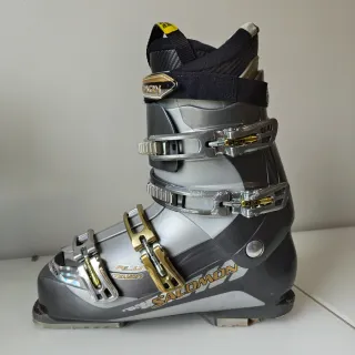 Botas de esquí Salomon Mission Alu en color gris, con detalles dorados, cierre con 4 ganchos, correa superior de velcro. Talla 29 - 29.5, perfectas si calzas 44 ó 45. Tienen algunos roces/marcas pero muy poco uso, la mayoría del tiempo han estado guardadas. De hecho, la goma de los talones se ha quedado dura/roto de no usar (unas tapas nuevas pueden pedirse por internet por unos 12€). Perfectas para quien quiera iniciarse en el ski. Pueden verse y probar sin compromiso.