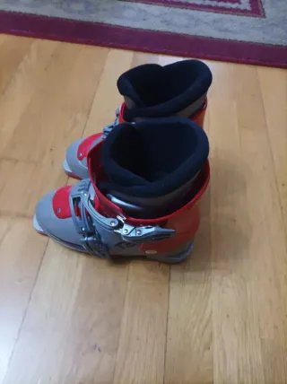 Botas de esquí Salomon para niñ@s. - Talla: 20-20.5 (equivalente a 247mm de longitud de suela). - Color: Gris y rojo.