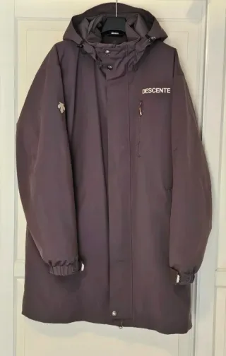 Abrigo largo de la marca Descente, color marrón grisáceo. Ideal para los días de mal tiempo. -Talla XL/ 52. - Diseño con abrigo interior y capucha desponrables con cremalleras. - Cierre de cremallera y botones. - Bolsillos frontales. - Puños ajustables.
