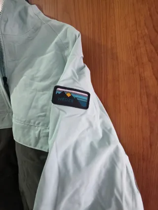 Chaqueta cortavientos de la marca Wedze, ideal para esquí y snowboard. - Diseño bicolor en verde menta y verde oscuro. - Capucha ajustable. - 2 Bolsillos frontales. - Muy calentita y cómoda. Usada como nueva, precio de la chaqueta nueva en la última imagen.