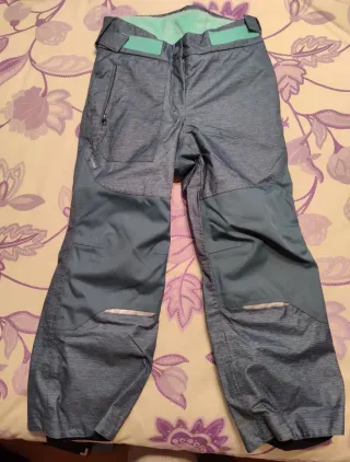 Pantalón de calidad de nieve para niño o niña, ideal para esquiar o jugar en la nieve. Muy calentito. Decathlon. Usado 1 vez. Diseñado para ofrecer comodidad y protección. 15 €, de regalo calcetines termicos talla 27-30 - Color gris azulalo - Detalle de tejido reforzado en rodillas y parte inferior. - Dos bolsillos delanteros - Cintura ajustable y también sujeción zona tobillo