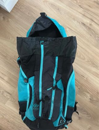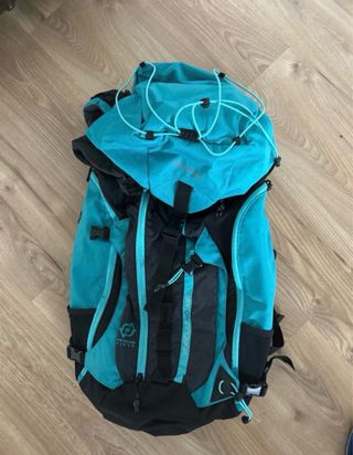 Mochila de senderismo con un diseño moderno y funcional, ideal para tus aventuras al aire libre. - Color azul turquesa y negro. - Compartimento principal espacioso. - Bolsillos laterales. - Correas ajustables para mayor comodidad. - Sistema de ventilación en la espalda.