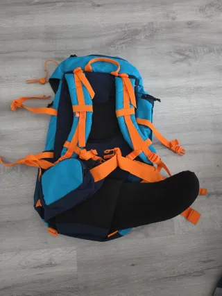 Mochila de acampada con un diseño moderno y funcional. Perfecta para tus aventuras al aire libre. - Color azul principal con detalles en naranja. - Compartimento principal espacioso. - Bolsillos exteriores adicionales. - Correas ajustables para mayor comodidad.