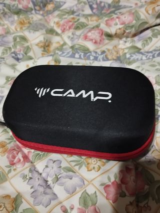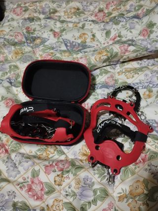 Crampones de senderismo de la marca CAMP, Talla pone L pero yo calzo de bota entre 42,5-43,5 - Color rojo y negro. - Cierre con velcro. - Cadena y púas metálicas.