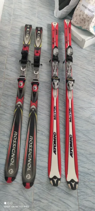 Conjunto de esquís para disfrutar de la nieve. 75€ cada par si te quedas los 2 por 120€ - Dos pares de esquís. - Marca Rossignol. - Marca Atomic.