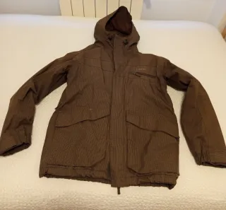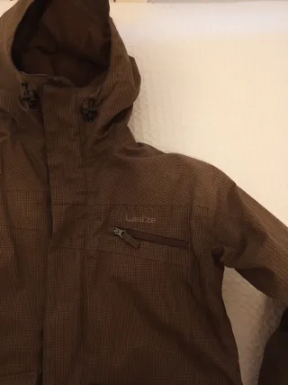 Chaqueta de nieve de la marca Wed'ze en talla S/M. Ideal para actividades en la montaña. - Diseño en color marrón con estampado. - Cierre de cremallera frontal. - Capucha integrada. - Bolsillos frontales con solapa.