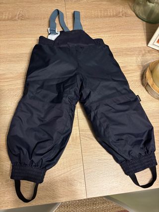 Peto de esquí en color azul marino. Puesto una vez y media hora. Precio en tienda 19,99 euros. - Tirantes ajustables. - Cintura elástica. - Bajos con elástico y trabilla para el pie.