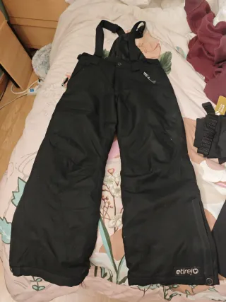 Pantalón de esquí negro para niño, talla 10 años. Ideal para disfrutar de la nieve con comodidad. - Tirantes ajustables. - Cremalleras en los bajos. - Marca: etirel.