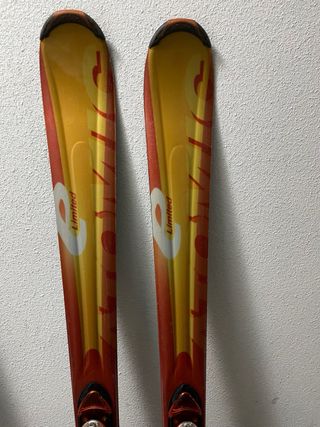 Esquís Atomic Limited diseñados para quienes se inician en el esquí. Presentan un atractivo diseño en tonos naranjas y amarillos. - Fijaciones Atomic naranjas. - Diseño Limited en la parte superior.
