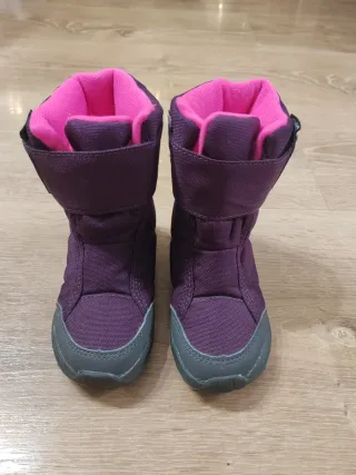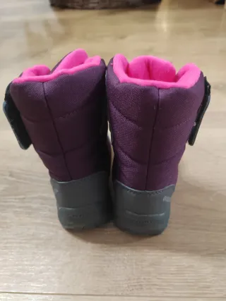 Botas de nieve Decathlon Quechua en talla 24. Usadas solo un día en la nieve, están impecables como nuevas. Perfectas para mantener los pies calientes y secos en el frío. - Color morado con detalles en rosa. - Cierre de velcro para un ajuste fácil. - Suela de goma resistente.
