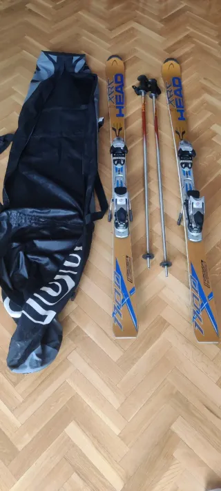 Esquís de la marca HEAD, de gama alta,con una longitud de 1,70 metros. No son para principiantes. Estructura sandwich de competición y tecnología intelligence con fibras piezoeléctricas. Buen agarre en hielo. Incluye bastones de la misma marca y funda. Indicados para esquiador avanzado, mayor estabilidad a alta velocidad y en nieve dura pero requieren más esfuerzo y pueden cansar las piernas ya que son pesados y duros. Yo mido 1,79 y peso 80 kg. También tengo botas de la talla 27,5 si te interesan.