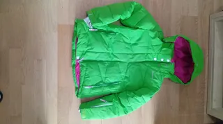 Chaqueta de esquí para 9-10 ideal para mantenerse abrigado en la montaña. Su diseño combina funcionalidad y estilo. - Color verde brillante con detalles interiores en rosa fucsia. - Capucha integrada. - Cierre de cremallera frontal. - Bolsillos con cremallera. - Puños ajustables.