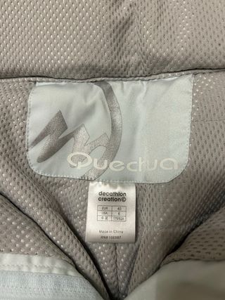 Pantalón de esquí para chica en talla M marca Quechua. Diseñado para ofrecer comodidad y protección en la montaña. - Color entre azul/gris muy claro. - Cremalleras en los bolsillos laterales. - Cintura ajustable, impermeable y RECCO.