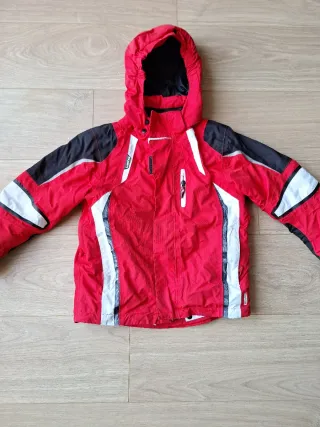 Chaqueta de esquí para niño en color rojo, ideal para actividades en la nieve. Diseñada para ofrecer comodidad y protección. Talla 6 años, de 115 a 124 cm de altura. - Diseño con capucha. - Cremalleras frontales y en bolsillos. - Detalles en blanco y negro.