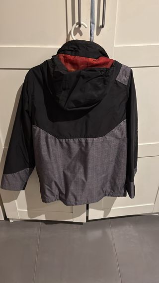 Chaqueta de esquí de la marca Wed'ze, ideal para jóvenes esquiadores. - Color negro y gris jaspeado. - Detalles en color naranja. - Capucha integrada.