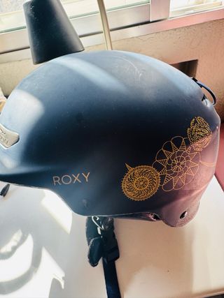 Casco de esquí o snowboard de la marca ROXY en color azul marino. Presenta un diseño con detalles dorados. - Marca: ROXY - Color: Azul marino - Diseño: Detalles dorados -Talla 58 Muy poco usado