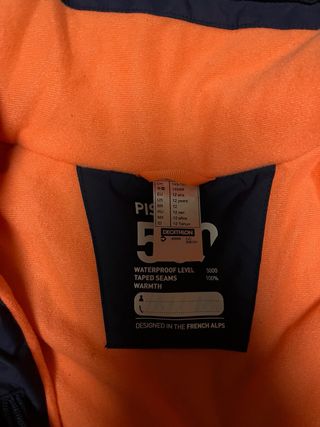 Pantalón de esquí para niño de la marca Decathlon, específicamente del modelo Wedze 500 PNF (Pull'n Fit). Características Principales: Marca/Modelo: Decathlon / Wedze 500 PNF. Talla: Diseñado para 8-10 años, con una altura recomendada de 125-142 cm (etiqueta visible en la imagen). Impermeabilidad: Nivel de 5000 mm, con costuras selladas en zonas clave, lo que protege de lluvias intensas o condiciones de nieve. Ajuste: Cuenta con el sistema patentado PULL'N FIT, que permite ajustar fácilmente la longitud de las perneras del pantalón para adaptarse al crecimiento del niño. Aislamiento: Aislamiento térmico con guata y un forro de punto