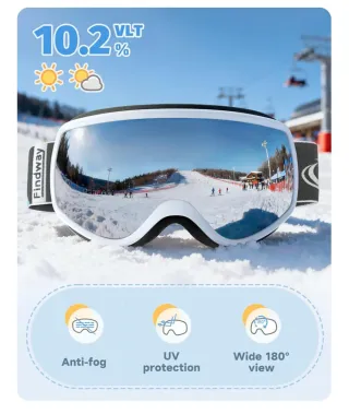 Gafas de esquí diseñadas para niños, con lente gris/argentado y VLT del 10%. Nuevo con etiquetas, nunca se ha usado.