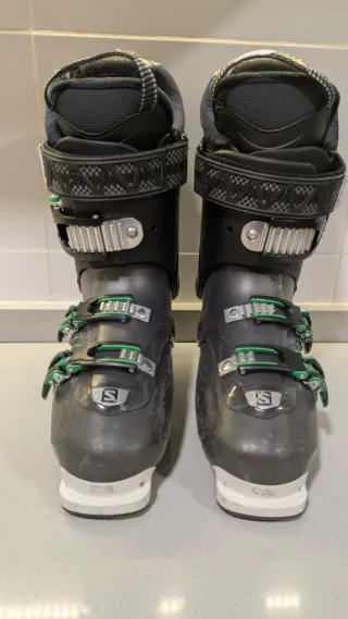 Botas de esquí Salomon Quest Access 80. Muy buen estado, muy comodas, ideales para nivel intermedio-alto. - Color negro con detalles en verde. - Cierre con 3 ganchos y correa superior. - Marca Salomon en la lengüeta y lateral.