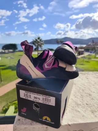 Pies de gato La Sportiva Katana Woman en talla 36.5. - Color blanco y morado. - Modelo Katana Woman. - Marca La Sportiva. Usado solo una vez, lo vendo porque me queda pequeño. Uso una 37 #sportiva #katana #piesdegato #boreal #tenaya #montaña