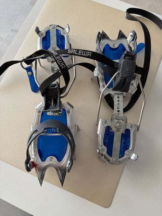 Crampones de la marca Salewa Semi-Automáticos - Diseño robusto y duradero. - Correas de sujeción ajustables. - Puntas metálicas afiladas.
