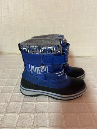 Botas de nieve para niñ@, talla 31. Han sido usadas una sola vez. - Color azul y negro. - Cierre de velcro. - Forro interior cálido.
