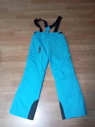 Pantalón de esquí Crivit en color azul, con tirantes ajustables. solamente utilizado una vez, porque se le quedó pequeño. - Talla: 134-149 cm (equivalente a 8-10 años). - Tirantes negros. - Detalle en color negro en la parte inferior de las perneras.