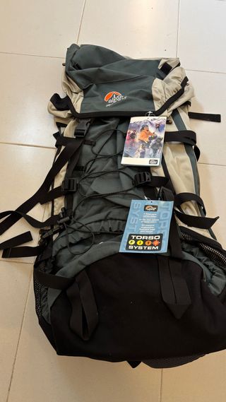 A estrenar nueva Mochila de montaña Lowe Alpine Frontier con capacidad de 65+15 litros. Diseñada para senderismo y expediciones. - Color verde y beige. - Sistema Torso Fit. - Compartimento principal espacioso. - Correas de compresión. - Bolsillos laterales de malla.