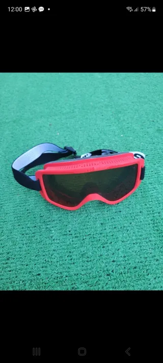 Gafas de ventisca de color rojo, diseñadas para niños de entre 6 y 8 años. - Montura de plástico rojo. - Lente oscura. - Correa ajustable.