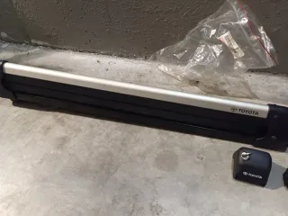 Portaesquís para Toyota, completamente nuevos y sin usar. Ideales para transportar tus esquís de forma segura. - Diseño en aluminio y negro. - Incluye tapas con logo Toyota y llaves.