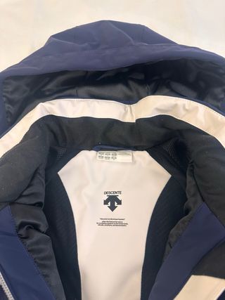 Conjunto de esquí para adulto, talla 38. Incluye chaqueta y pantalón. - Chaqueta azul con detalles en azul claro y blanco. - Pantalón azul con tirantes.
